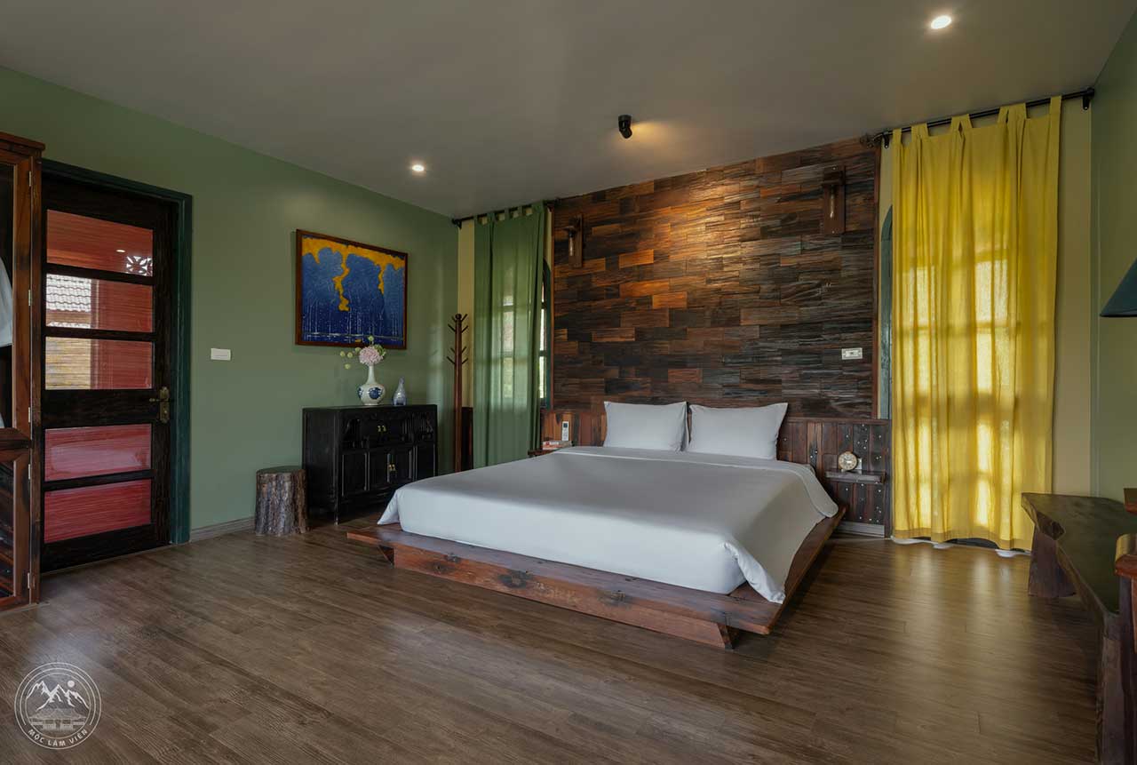 Mộc Trà 2 Villa là phòng nghỉ dành cho những ai yêu thích phong cách mộc mạc, tinh tế lấy cảm hứng từ kiến trúc truyền thống Việt Nam kết hợp hơi thở đương đại. Phòng nghỉ được thiết kế theo gam màu chủ đạo là xanh rêu, vàng nhạt và nâu gỗ, vừa tạo cảm giác gần gũi với thiên nhiên, vừa đem lại nét ấm áp, thư thái.